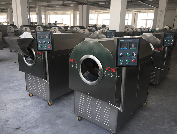 全自动炒花生机采用电磁加热智能控温设计 无需人工看管 该机一锅可炒制花生果28左右 炒制花生米一锅60斤左右 是新型的全自动花生炒货机
